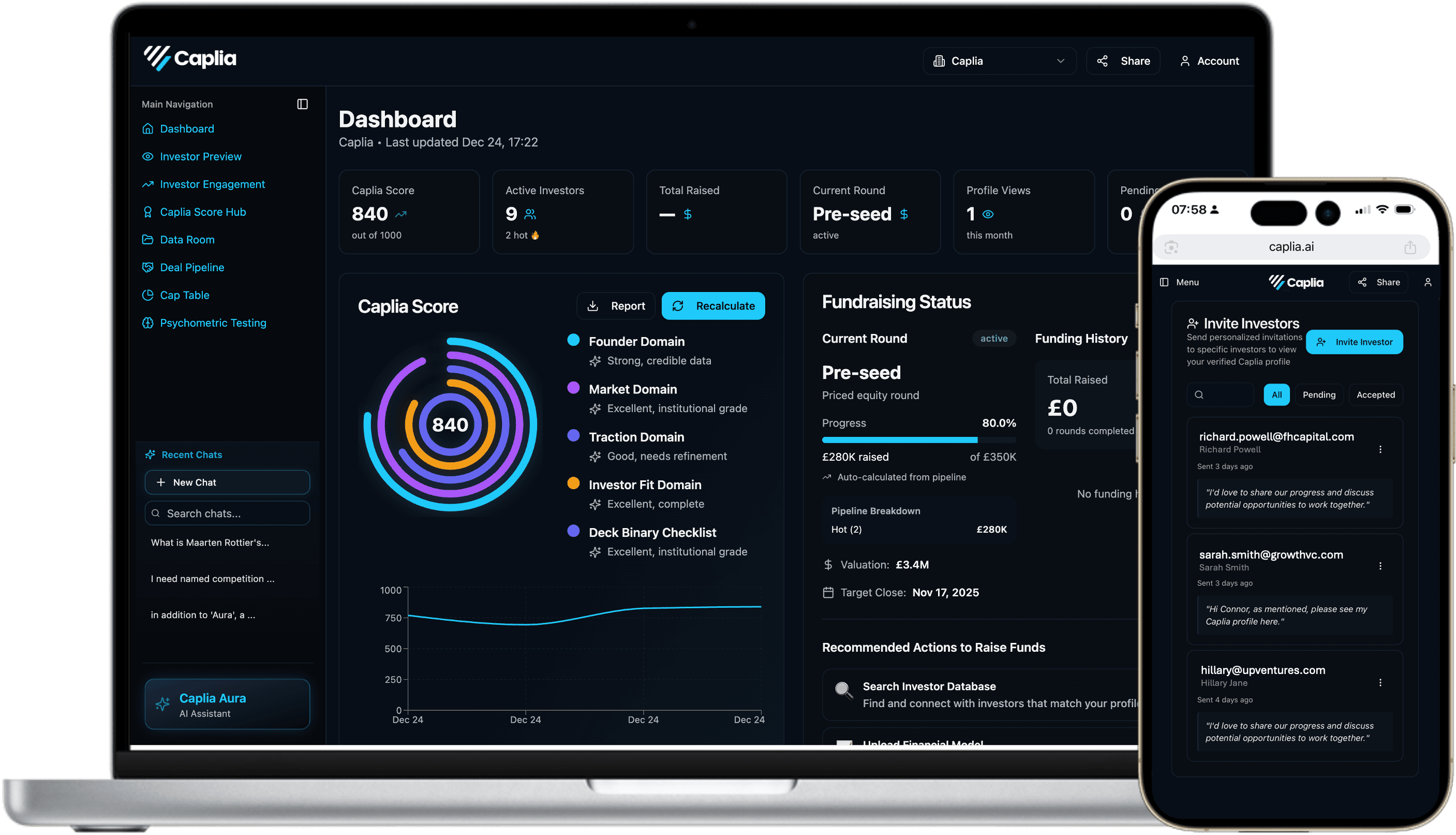 Caplia gives founders one place to run their entire fundraise and share a single verified profile with investors in one click.